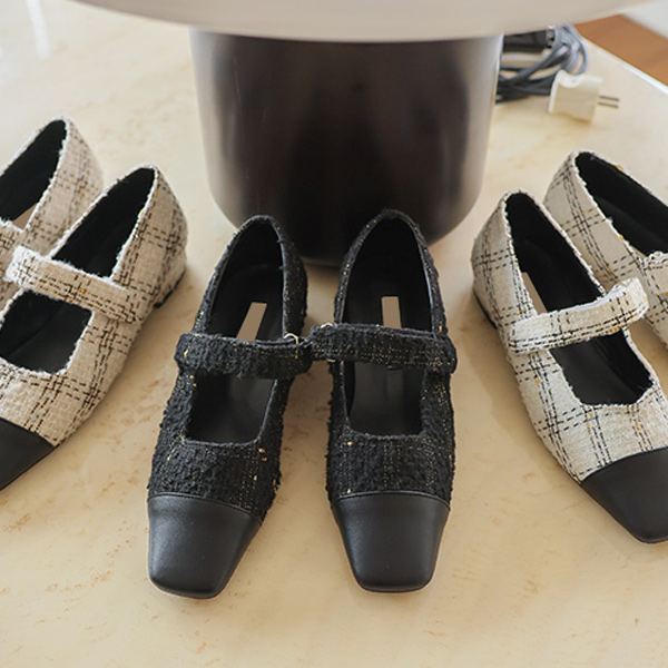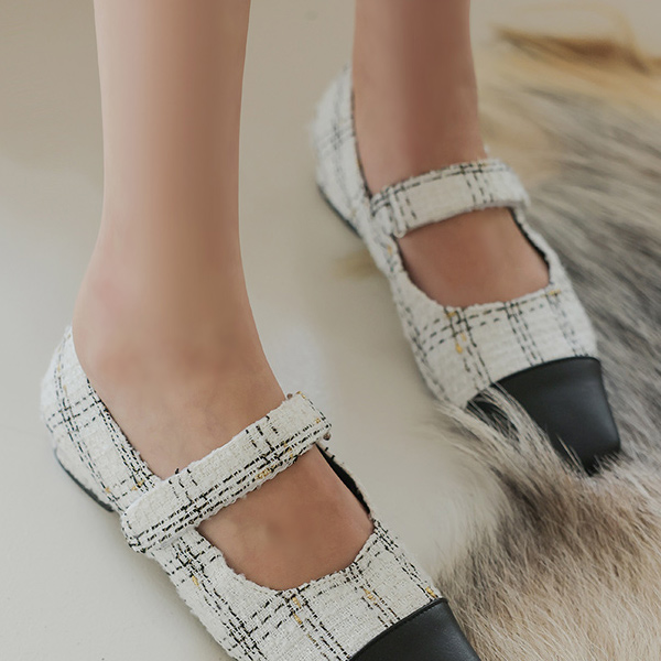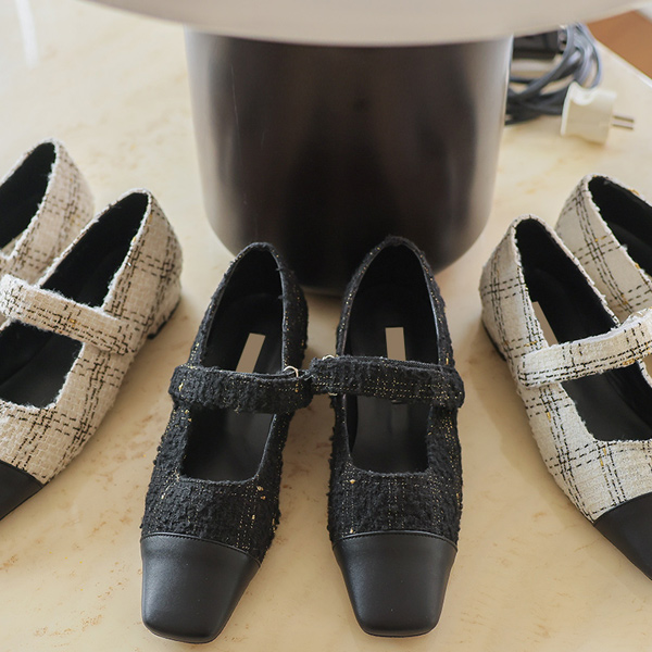 可爱 双色 配色 粗呢 玛莉·珍 平底鞋 鞋