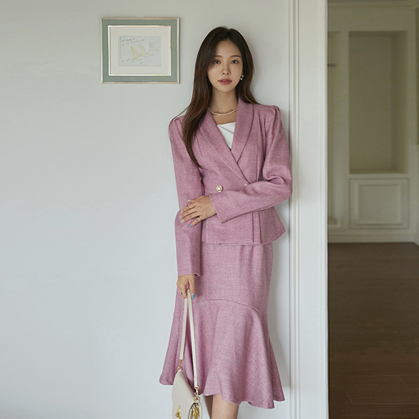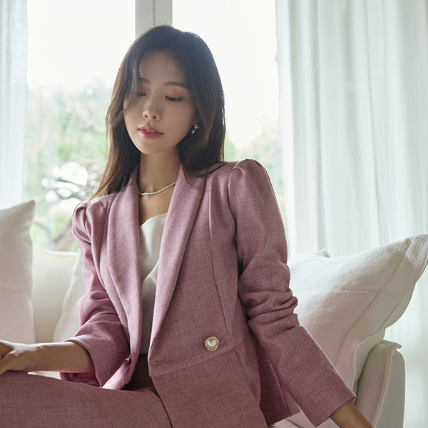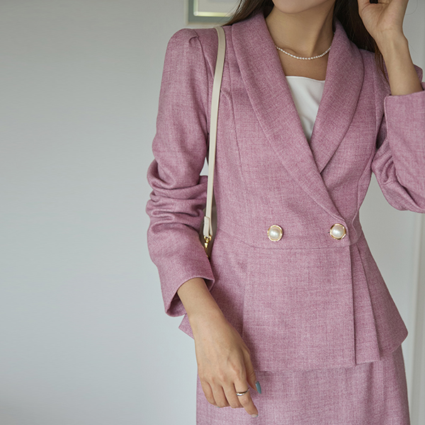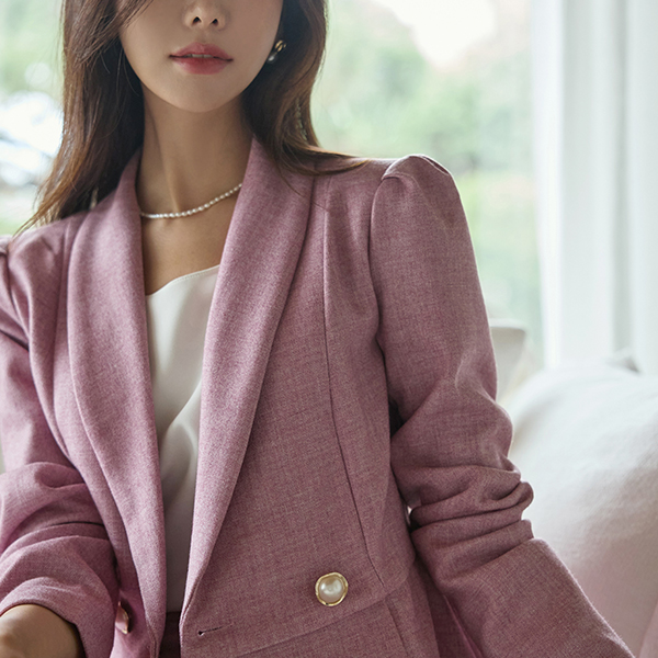 优雅 珍珠 扣子 荷叶边 Set-up 夹克