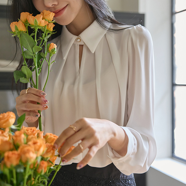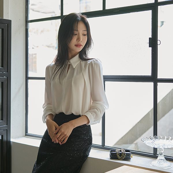 轻飘飘 珍珠 홀 领口线 罩衫 Ⅱ