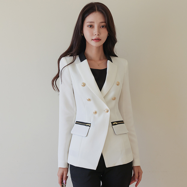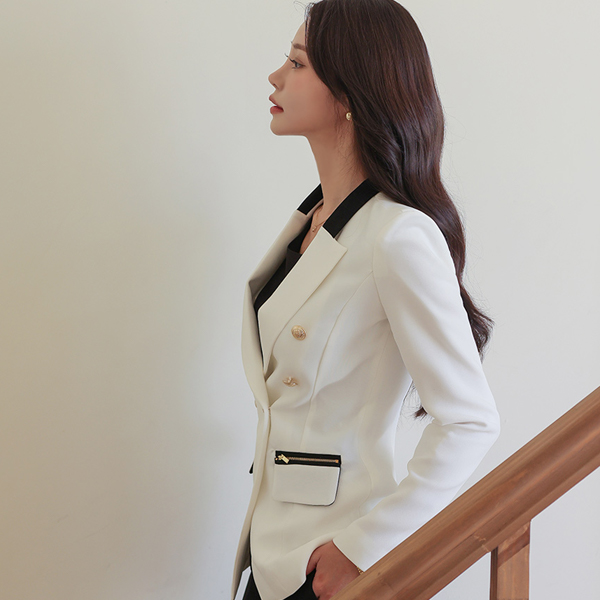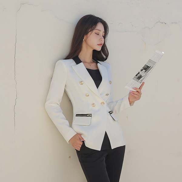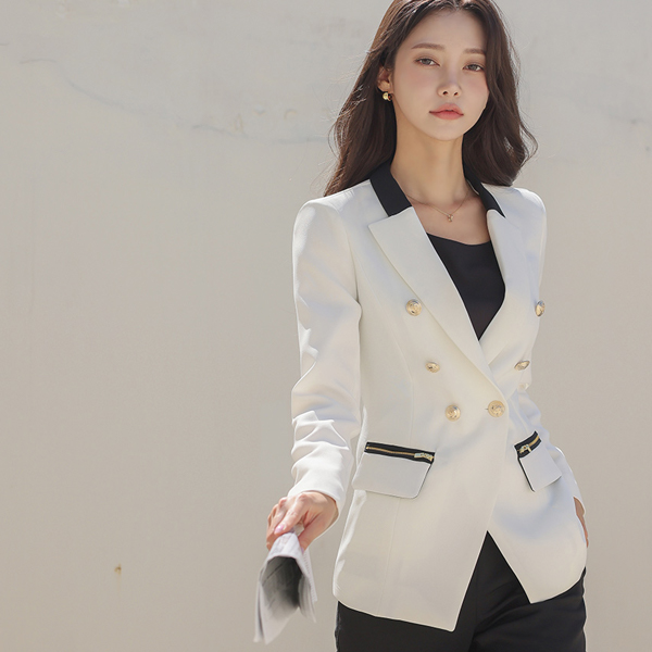 黄金 双排扣 拉链 口袋 修身 夹克