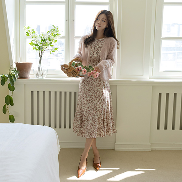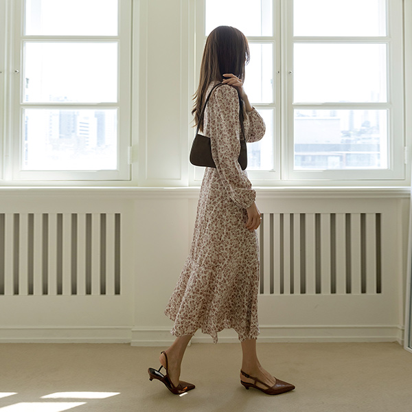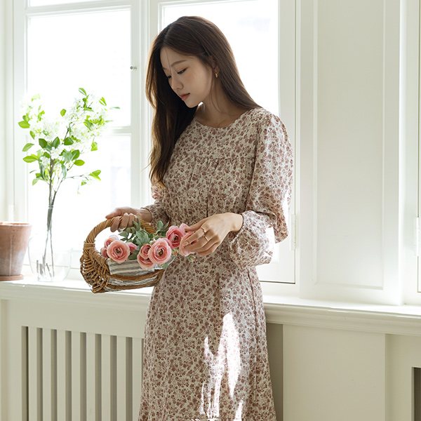浪漫 花纹 图案 褶皱 后面蝴蝶结 连衣裙