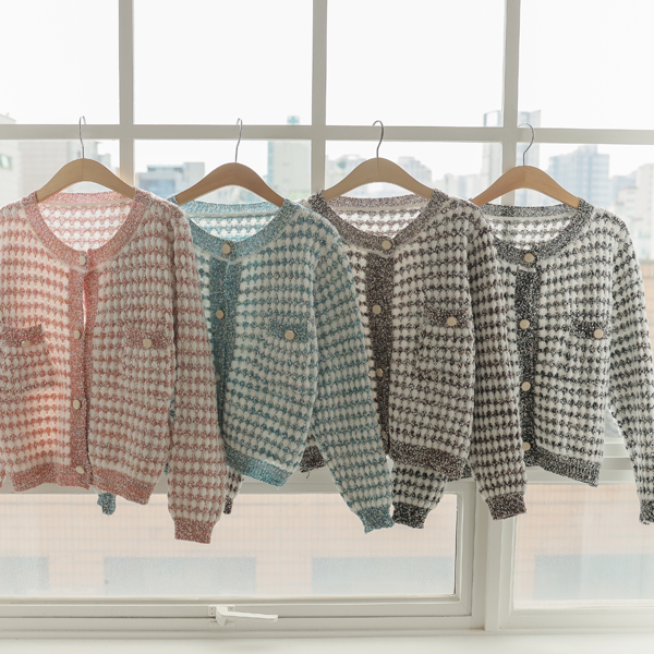蓬松。 混合 颜色 粗呢 针织衫 开衫
