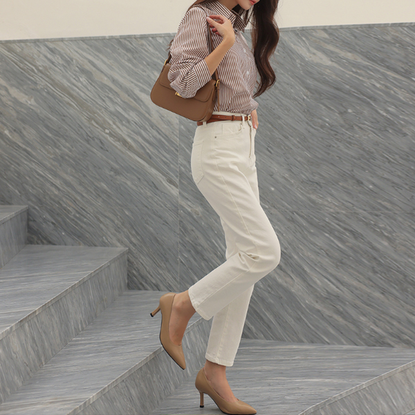 日常 细密 隐藏 松紧带 一字型 棉 裤子