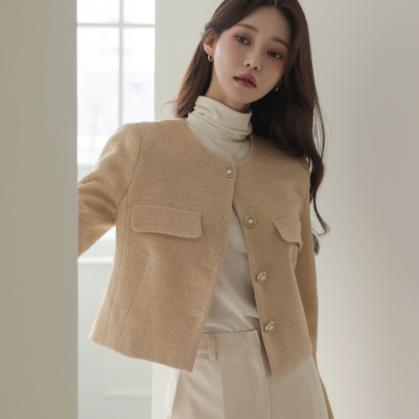 Prime 圆领 黄金 珍珠 扣子 粗呢 夹克