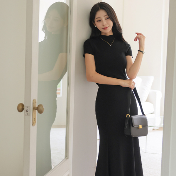 不规则 훌 斯利姆 弹力 长款 裙子