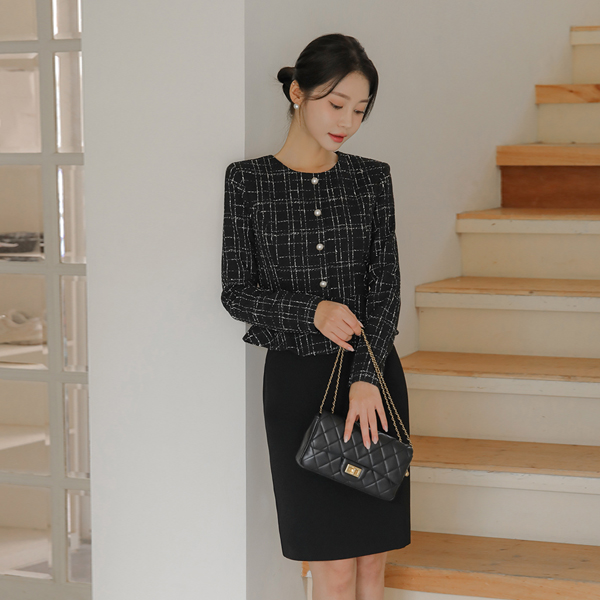 人造珍珠 粗呢 荷叶边 配色 连衣裙 Ⅱ