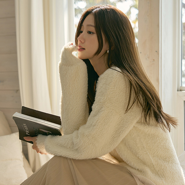 浪漫 柔软的 貂皮毛 针织衫 开衫