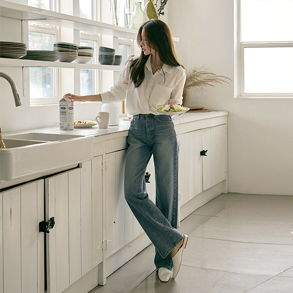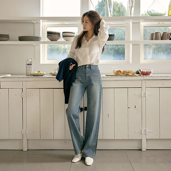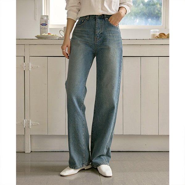 宽绰 长款 拉绒 牛仔色 裤子