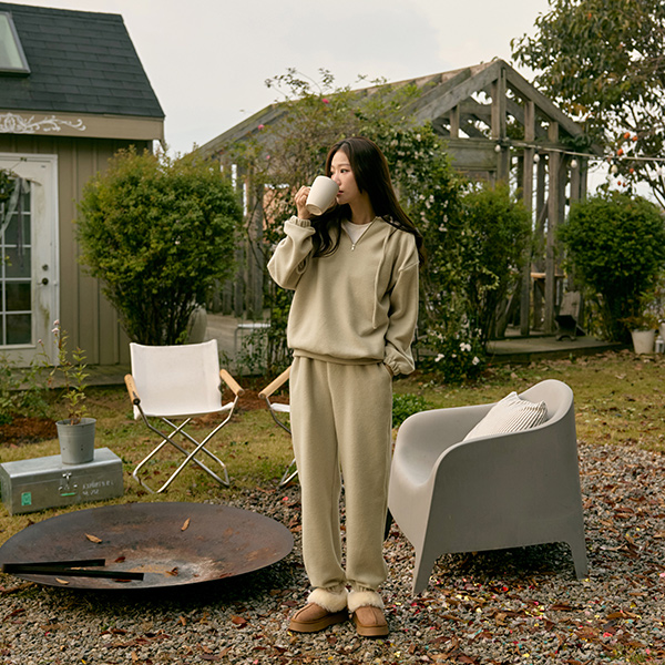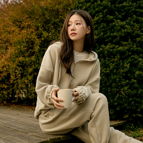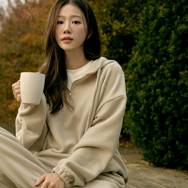 柔软 Peach 拉绒 带帽 拉链卫衣&조거팬츠 (套装)