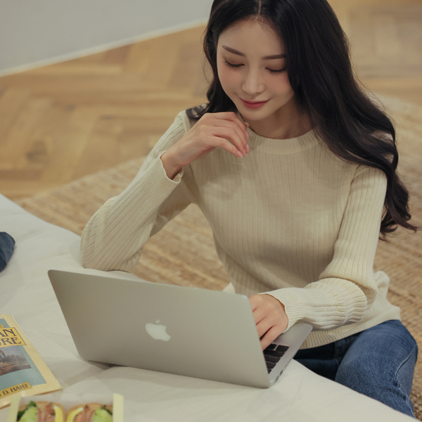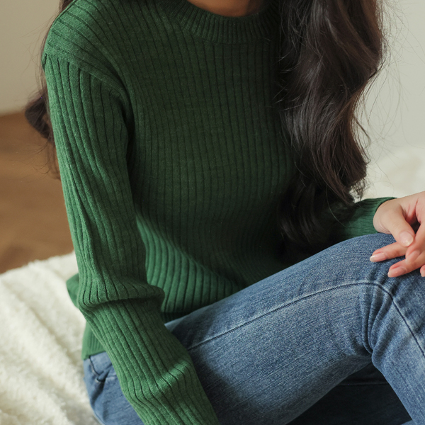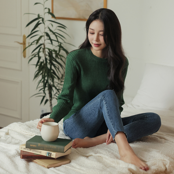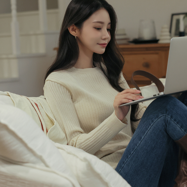 基本 圆领 条绒 针织衫