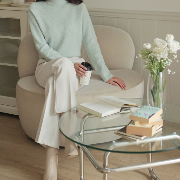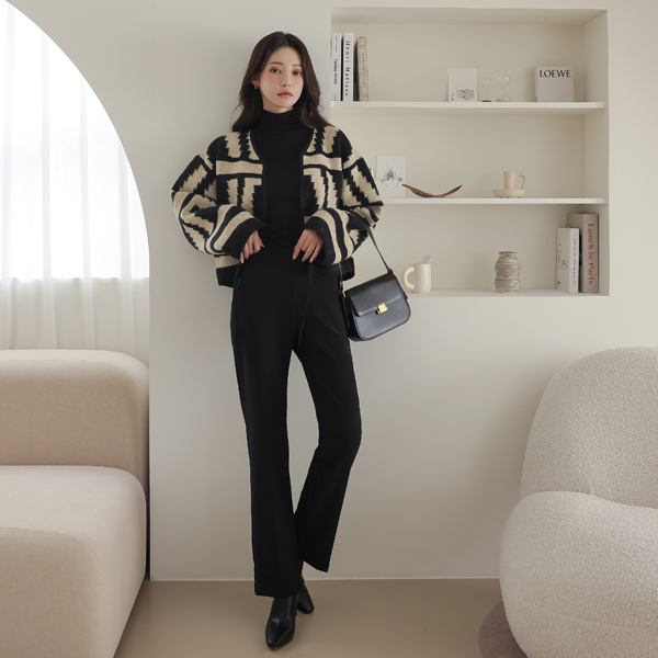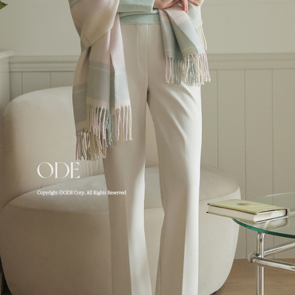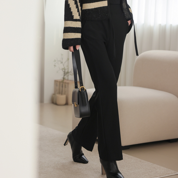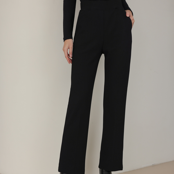 细密 弹力 腰头线条 松紧带 一字型 宽松长裤 (衬里加绒)