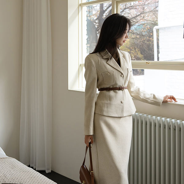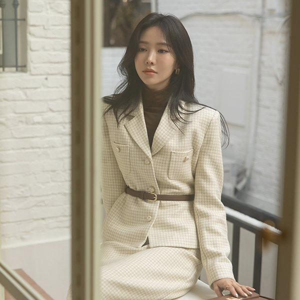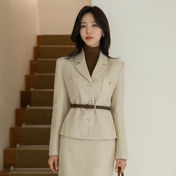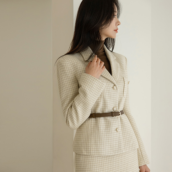古典 格子 线条 羊毛 Set-up 夹克