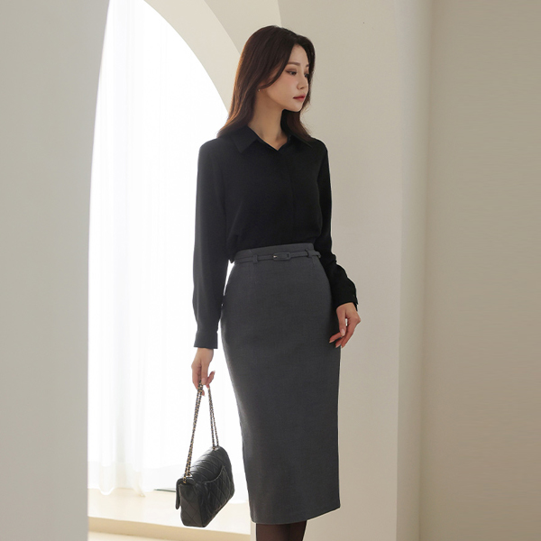 冬季 束带 高腰 H字型 裙子 (衬里加绒)