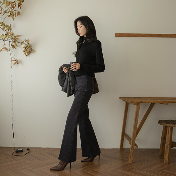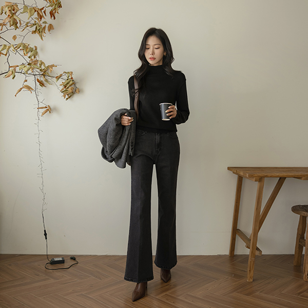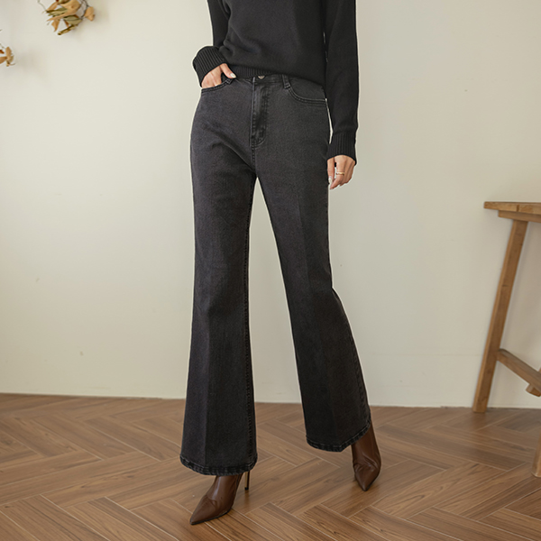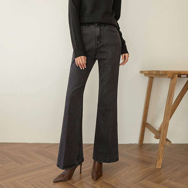 覆盖 喇叭 线条 衬里加绒 牛仔色 裤子
