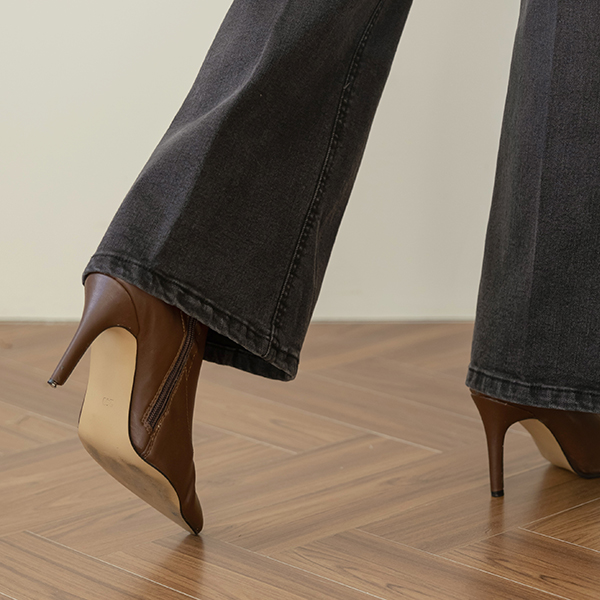 深颜色 修身 脚踝 高跟靴子