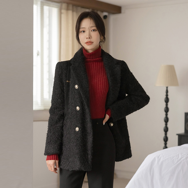 冬季 结子花式 双 扣子 短上衣 大衣 (绗缝里料)