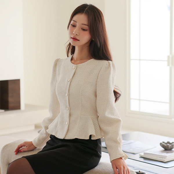 蓬松。 粗呢 荷叶边 罩衫