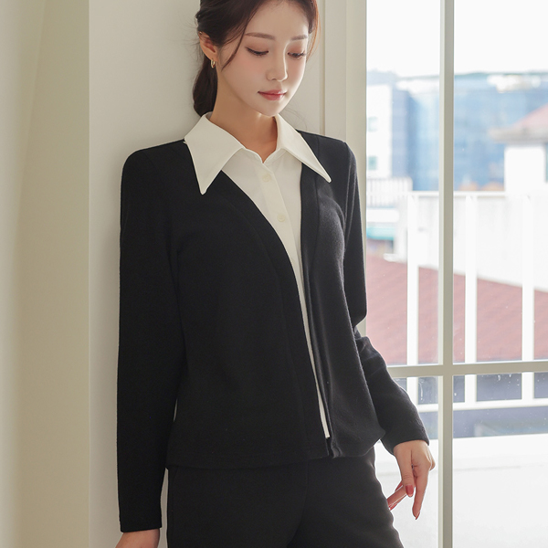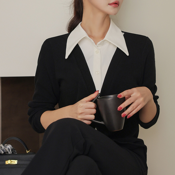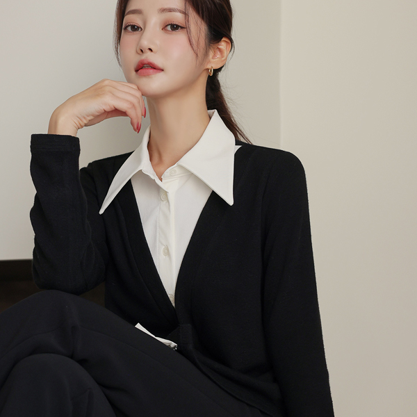 宽松 领子 衬衫 分层 开衫 罩衫