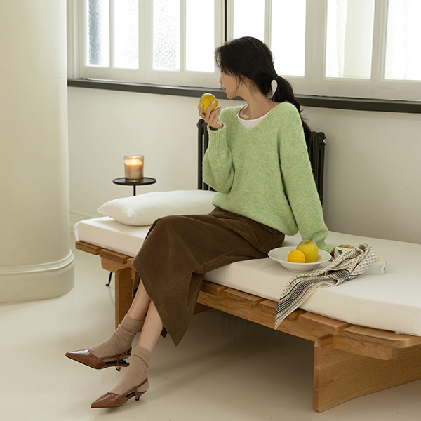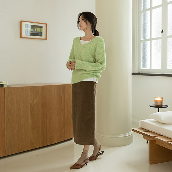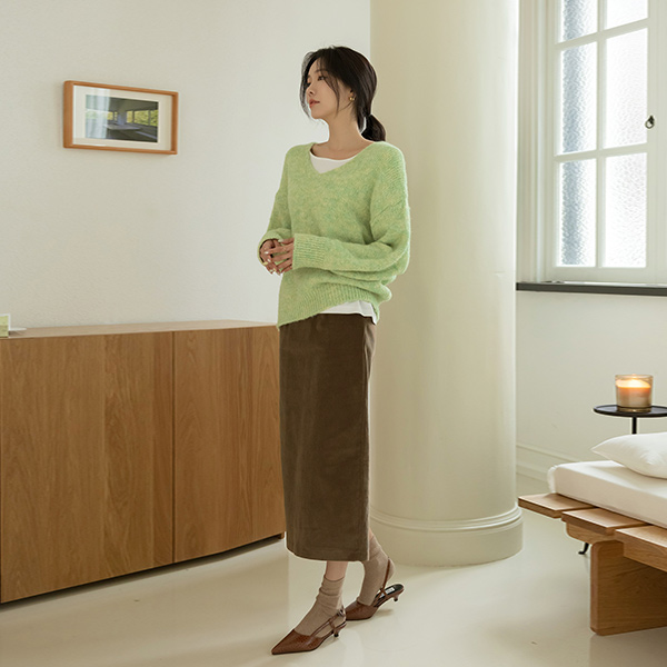 苗条 V字领 羊驼毛&羊毛 色彩点缀 针织衫
