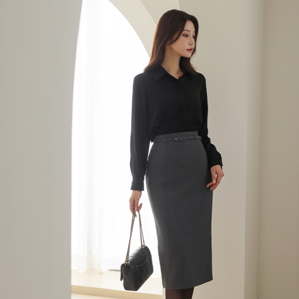 冬季 束带 高腰 H字型 裙子 (衬里加绒)