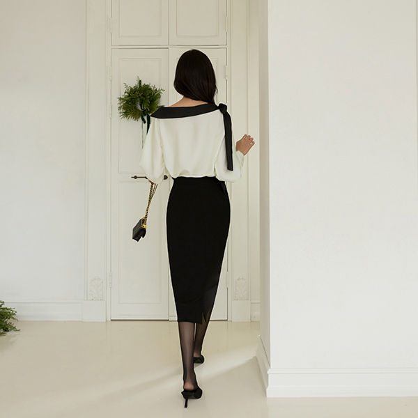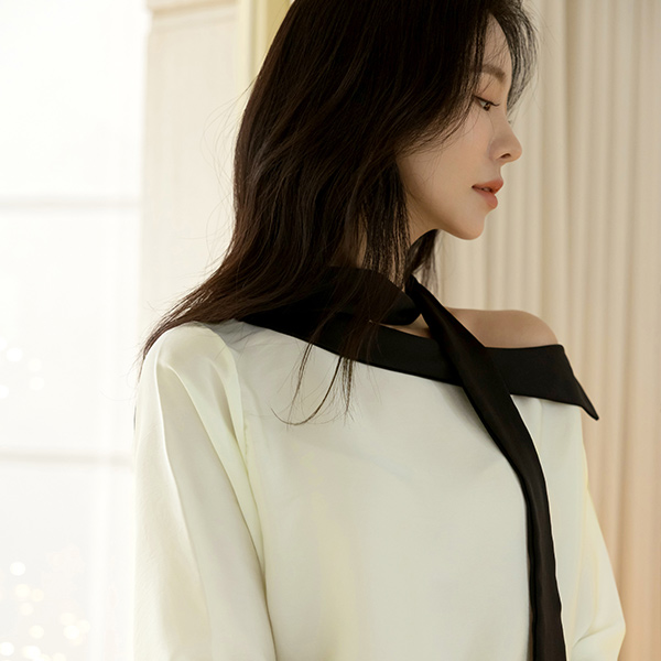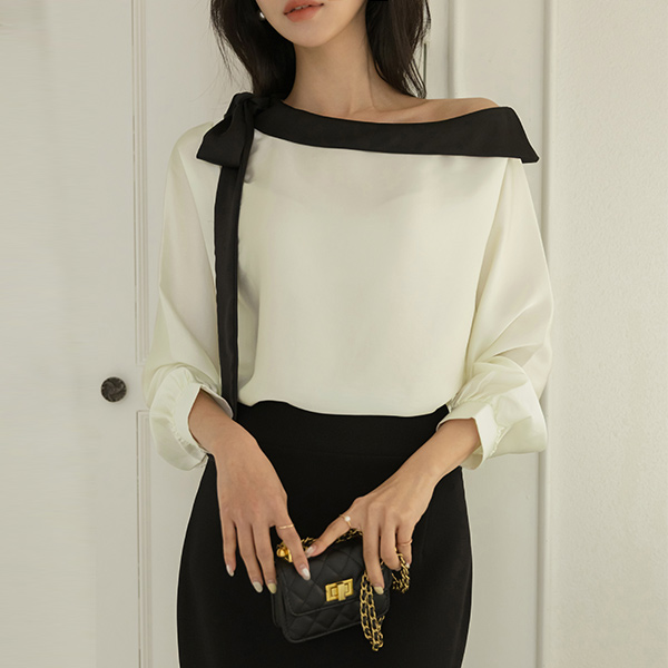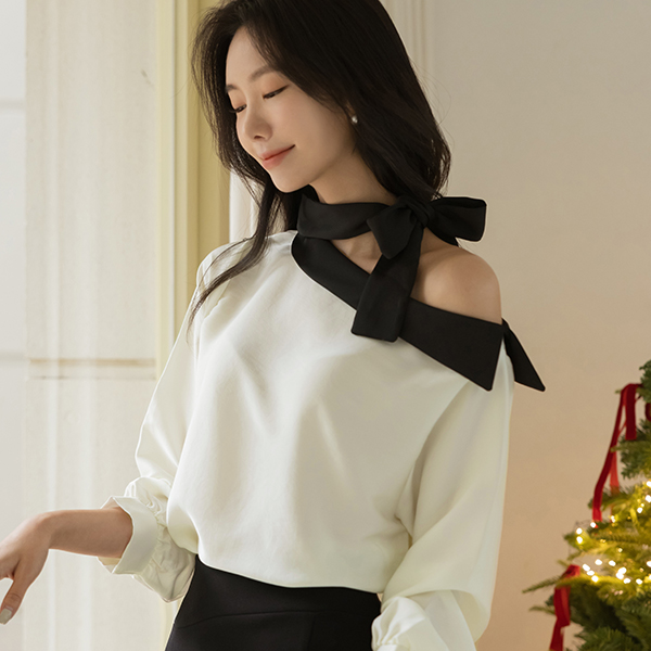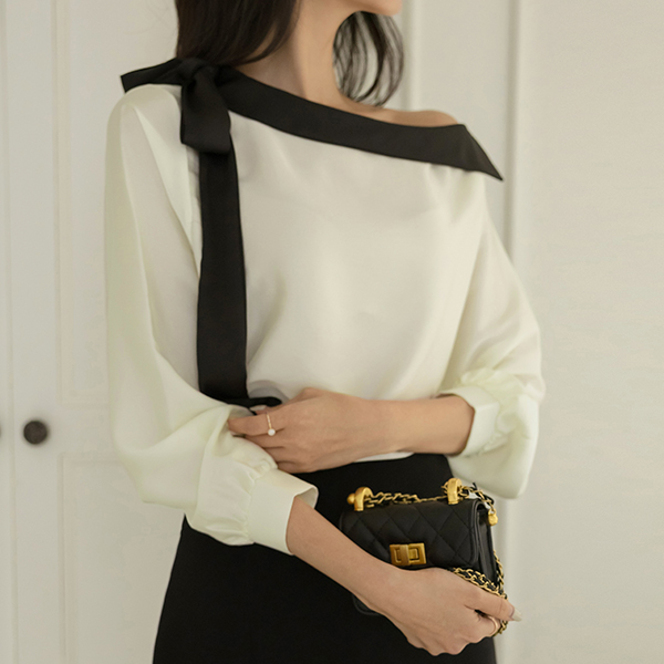 苗条 短上衣 露肩 蝴蝶结 领带 罩衫