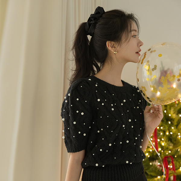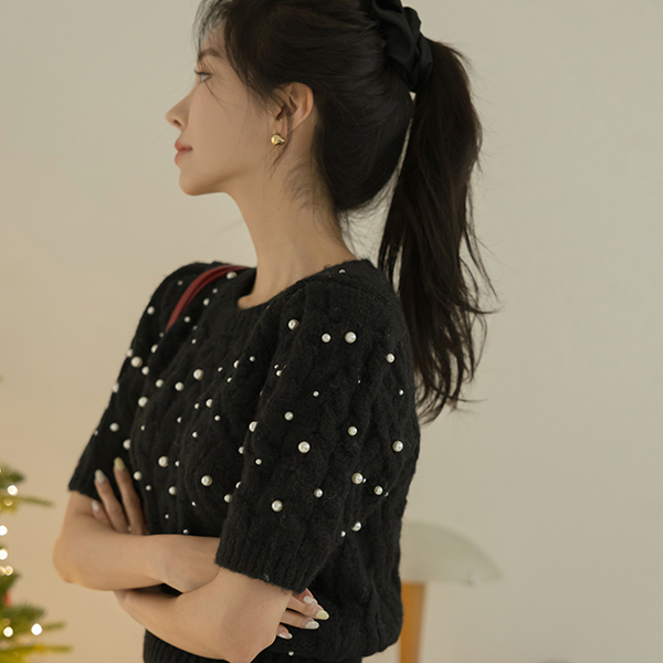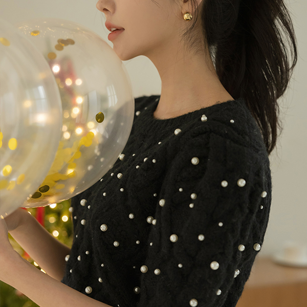 滑雪 珍珠 装饰 泡泡袖 羊毛 针织衫