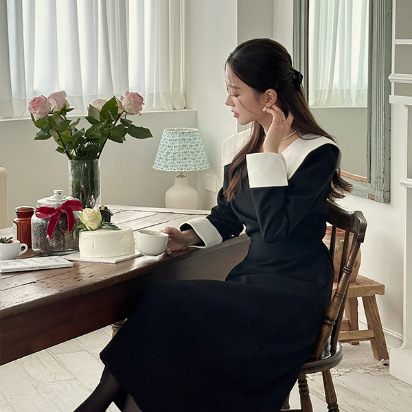 爱丽斯 宽松 领子 A字型 连衣裙