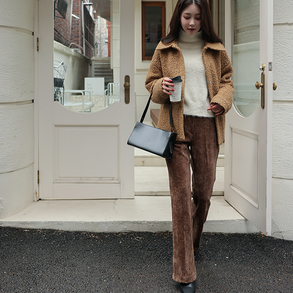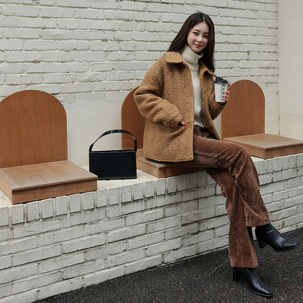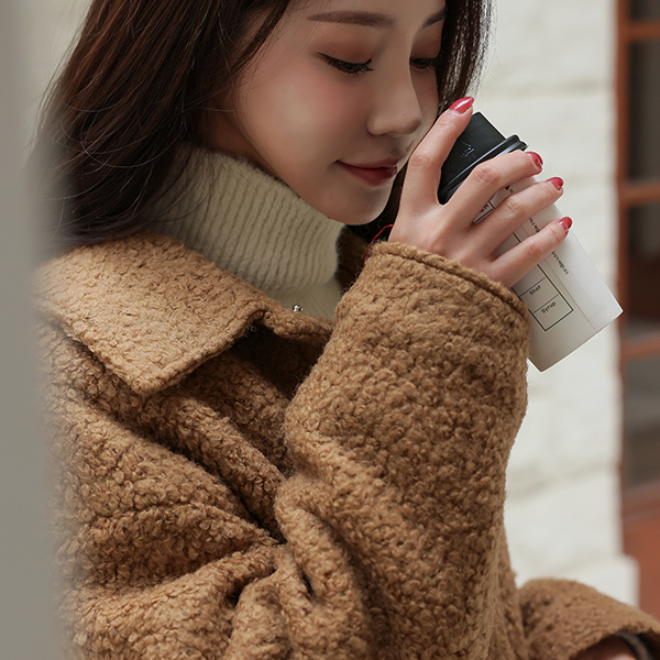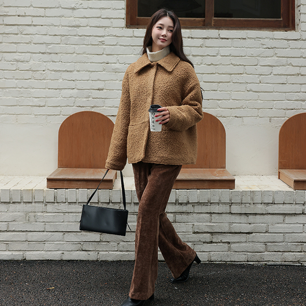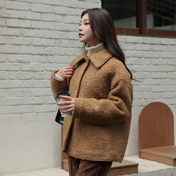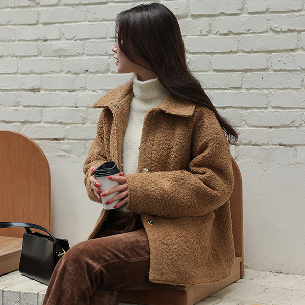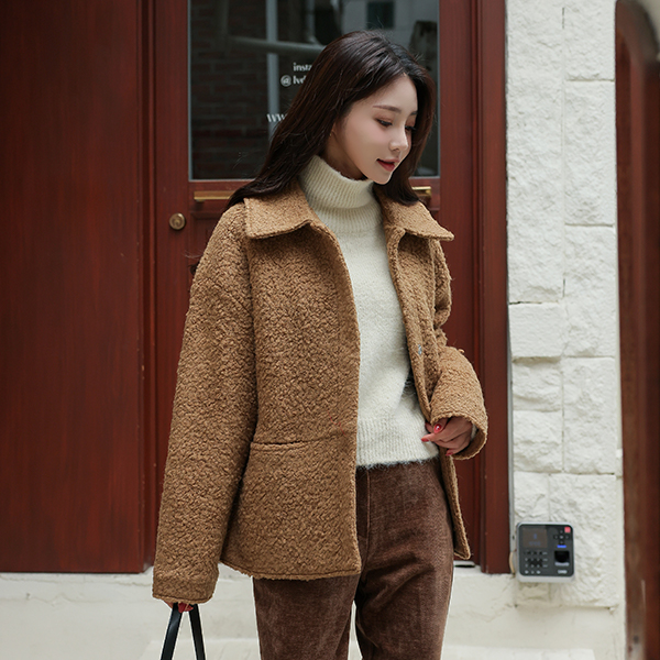 Teddy 结子花式 平底鞋 领子 羊毛 夹克 (绗缝里料)