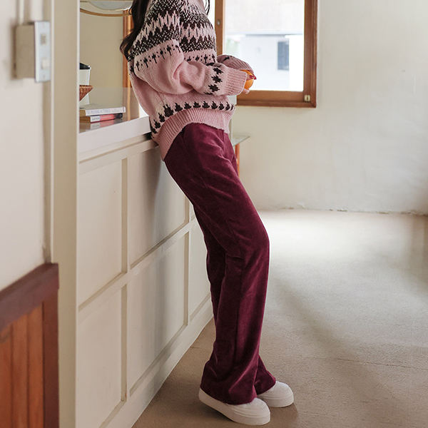 温和 冬季 丝绒 灯芯绒 喇叭 裤子