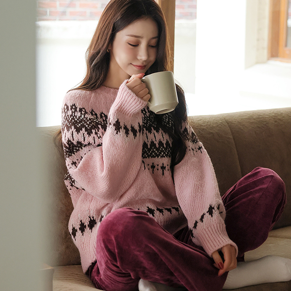 日常 北欧 图案 插肩 针织衫