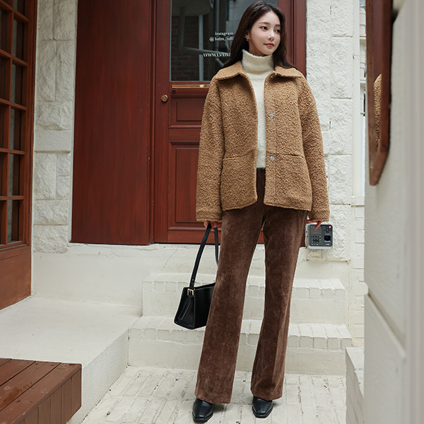 Teddy 结子花式 平底鞋 领子 羊毛 夹克 (绗缝里料)