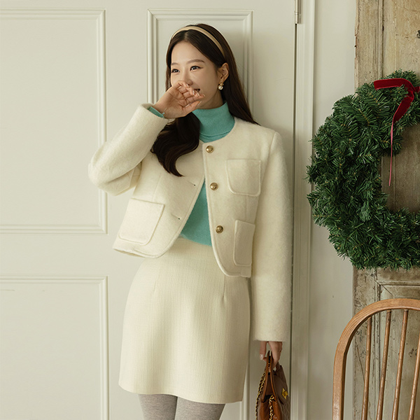 下雪 柔软 羊毛 金色纽扣 夹克