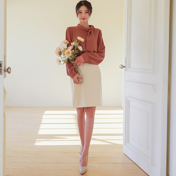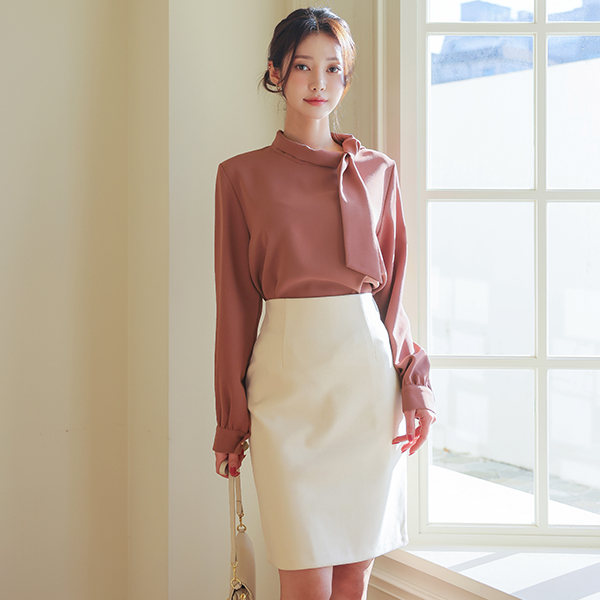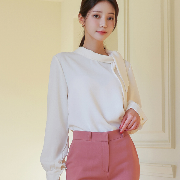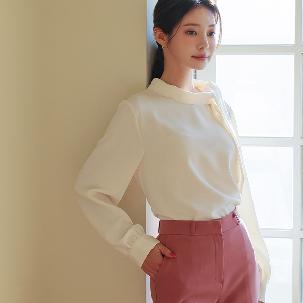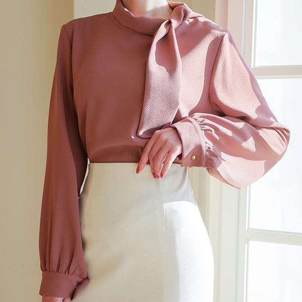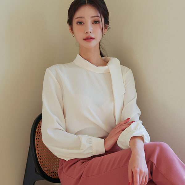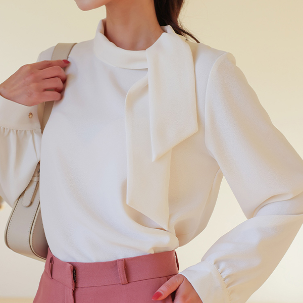 侧纽 围巾领 罩衫