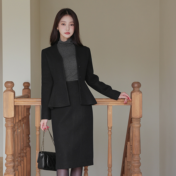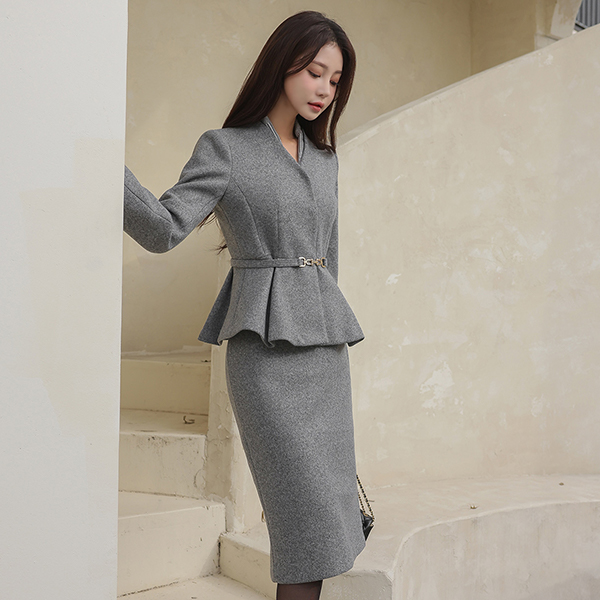 稍厚的 无领 V字领 束带 荷叶边 夹克