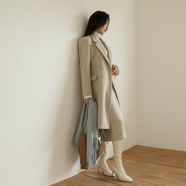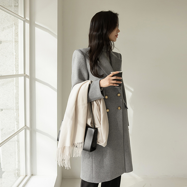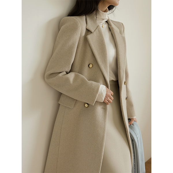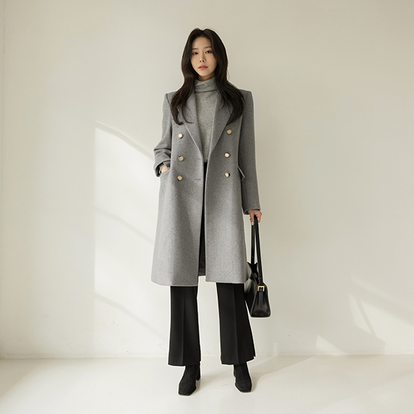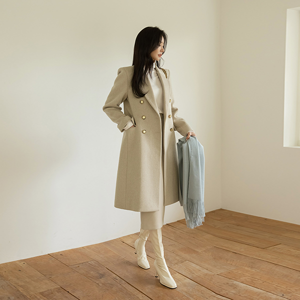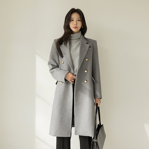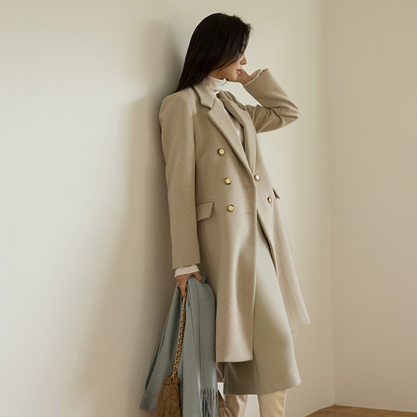 古典 线条 黄金 扣子 斯利姆 长款 羊毛 大衣