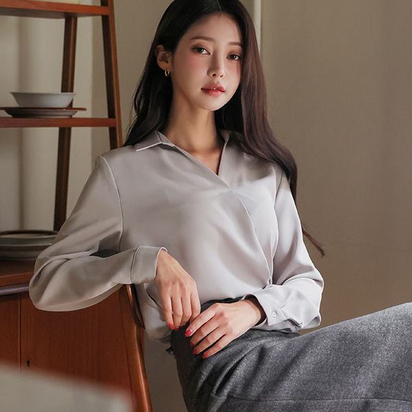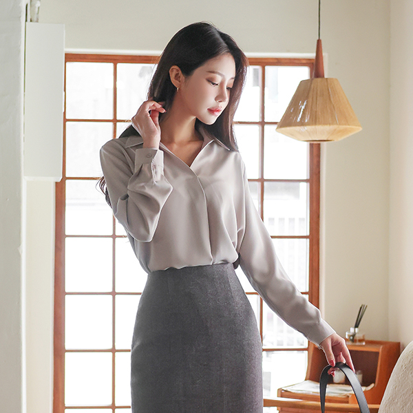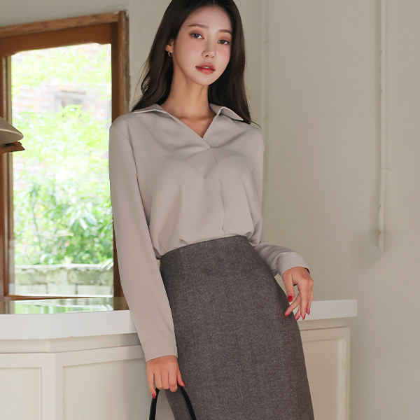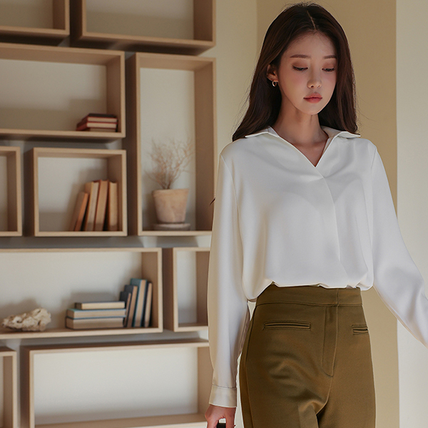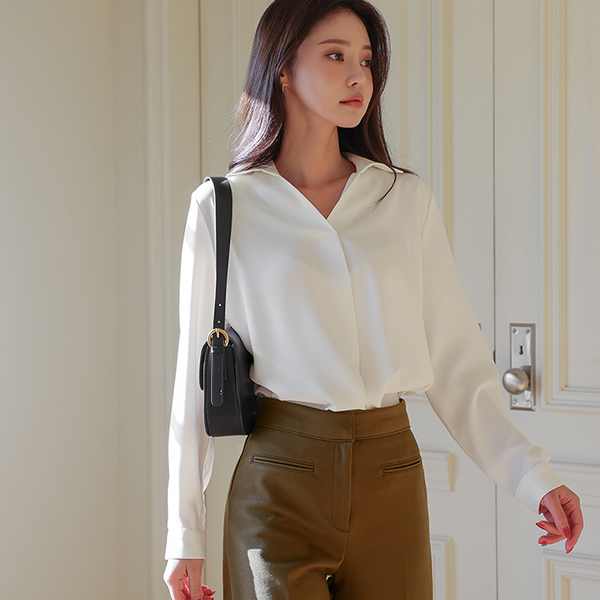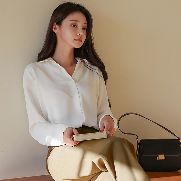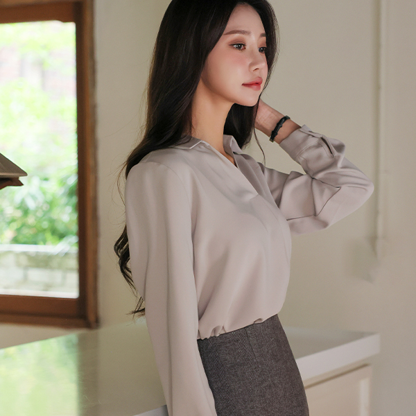 简单 半开 翻领 罩衫