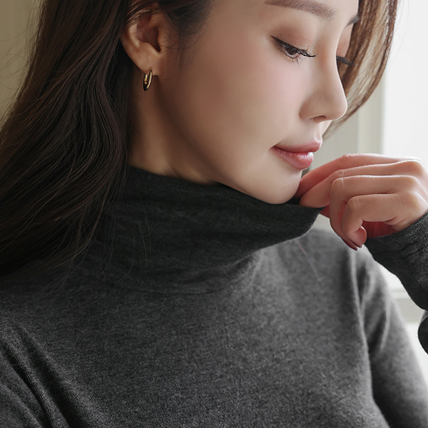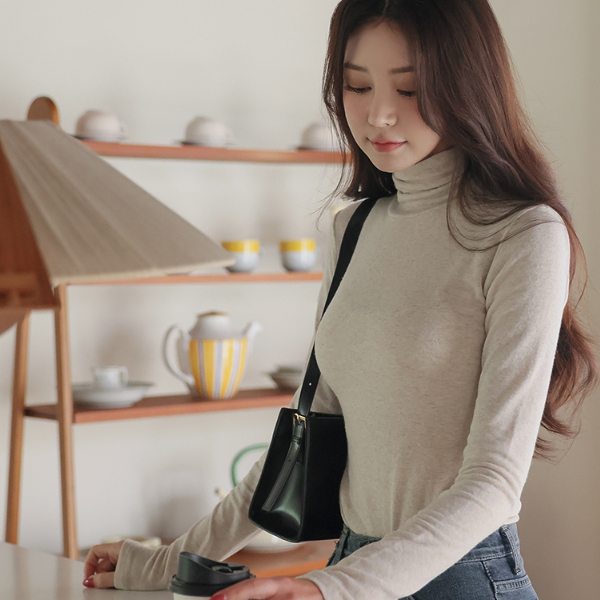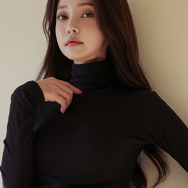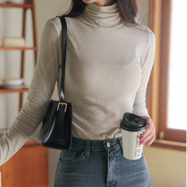 日常 颜色 斯利姆 高领 安哥拉 T恤衫