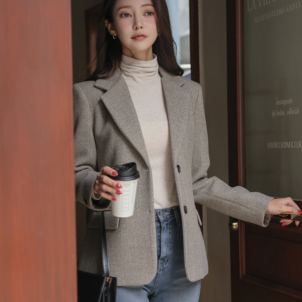 稍厚的 无领 V字领 束带 荷叶边 夹克