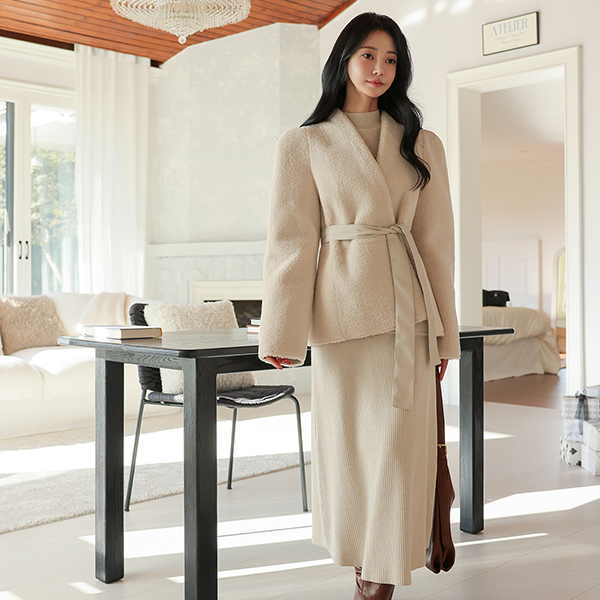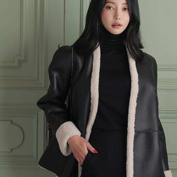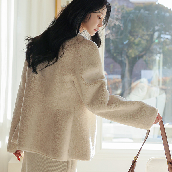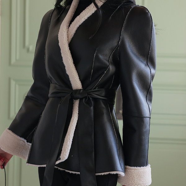 羊毛 皮 双面式 泡泡袖 袖 束带 Mustang