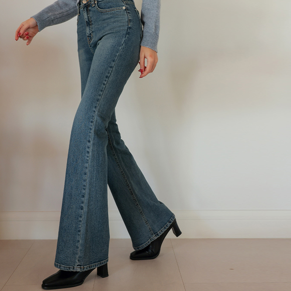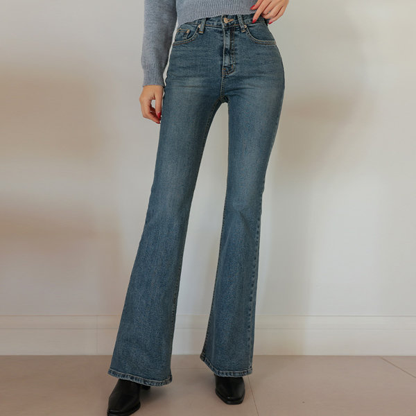 自然 斯利姆 弹力 喇叭 牛仔色 裤子