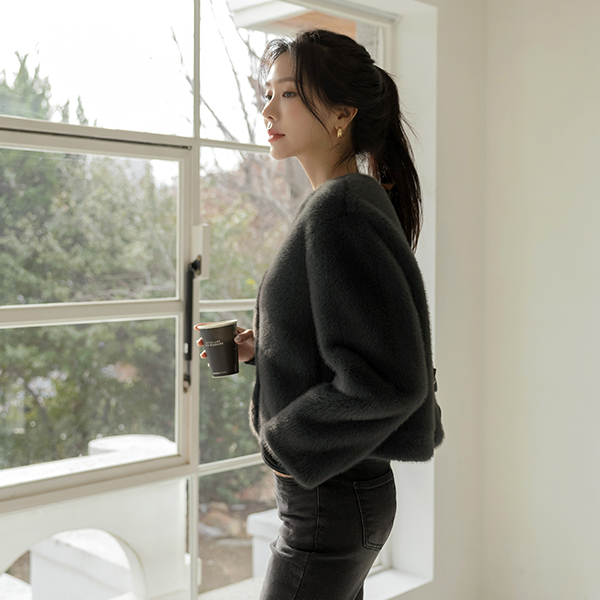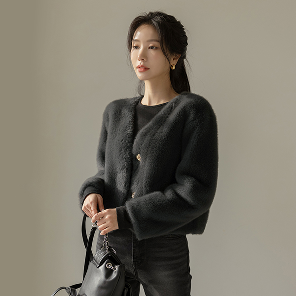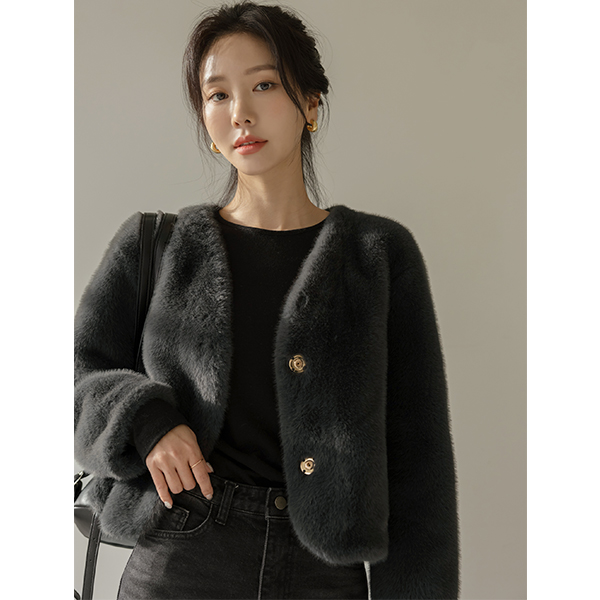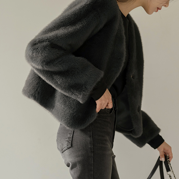 最少 隐藏 扣子 柔丝 Eco 毛皮草 夹克