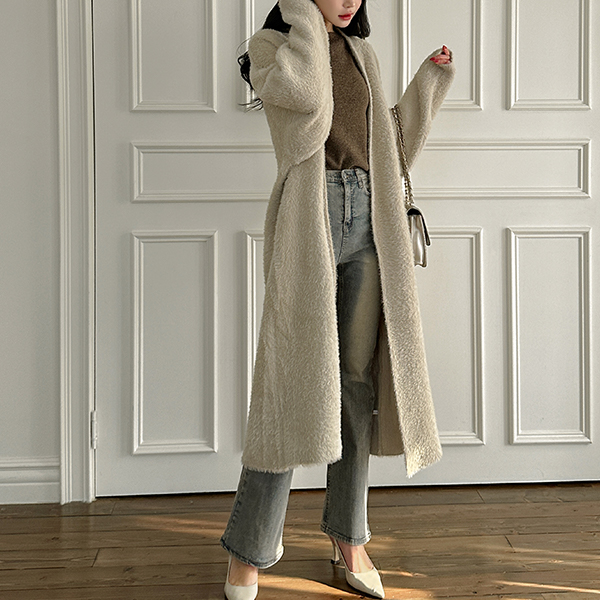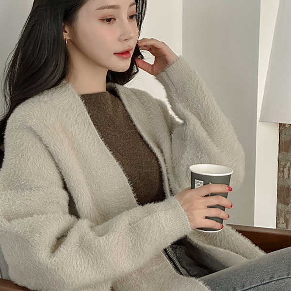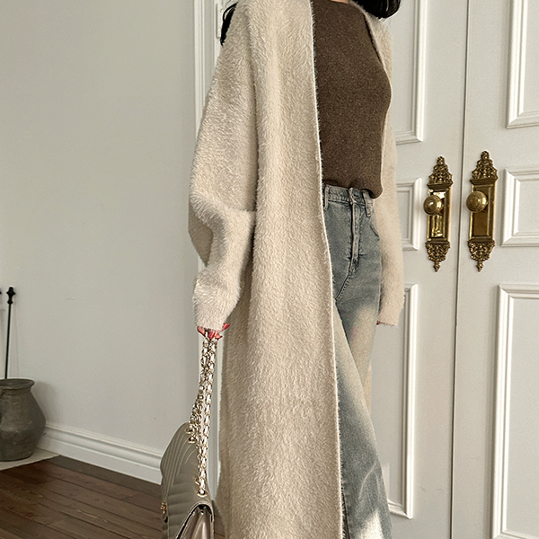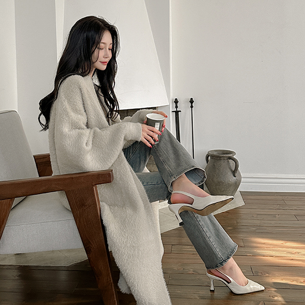 舒适 貂皮毛 敞开式 长款 开衫
