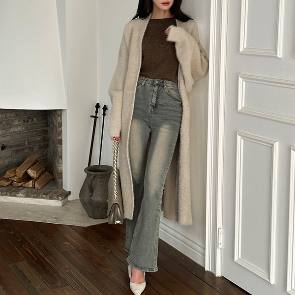舒适 貂皮毛 敞开式 长款 开衫