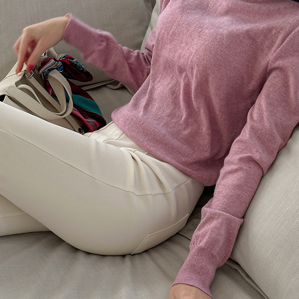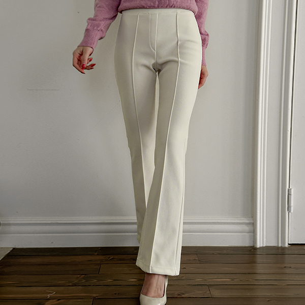 细密 弹力 细褶 松紧带 喇叭 裤子 (衬里加绒)