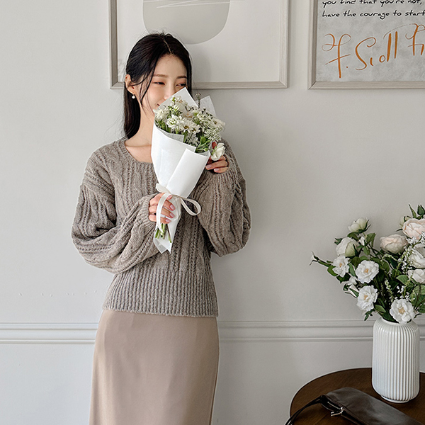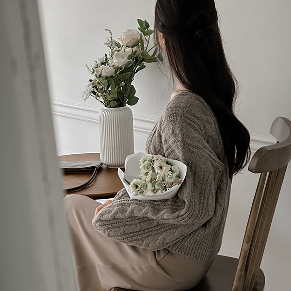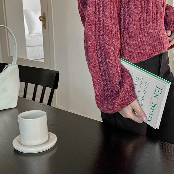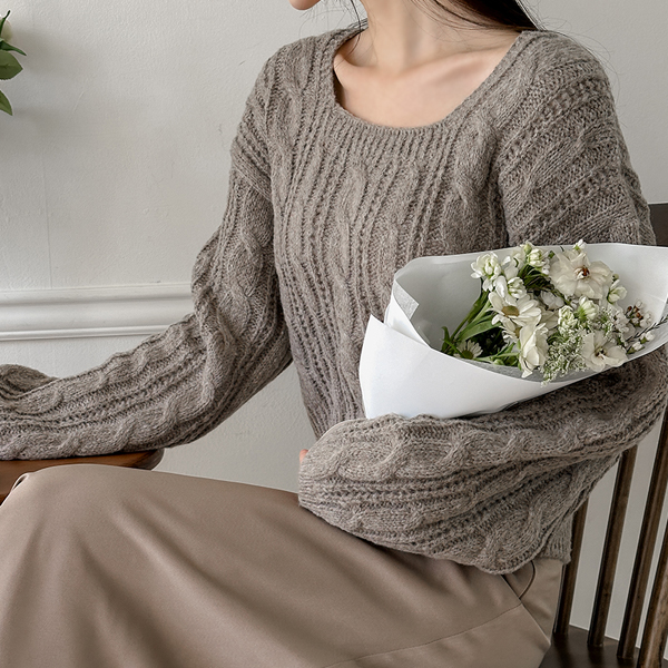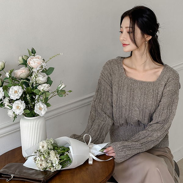 稍厚的 日常 缆绳 方领 针织衫