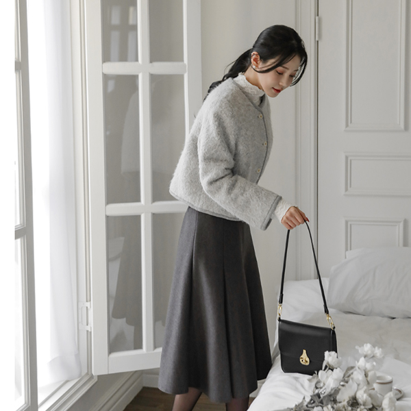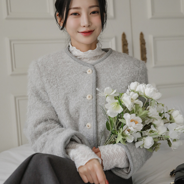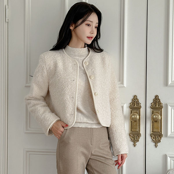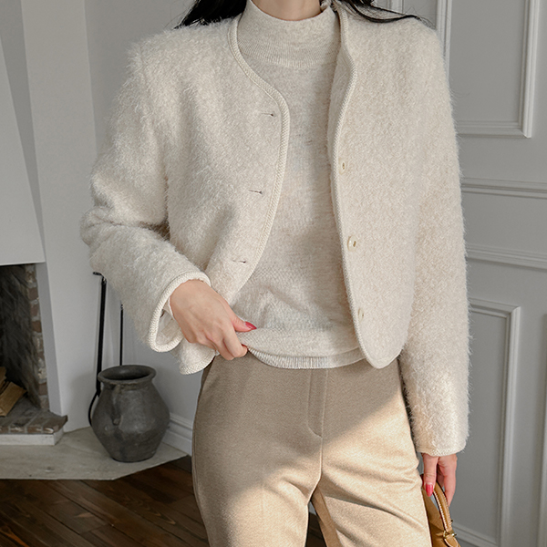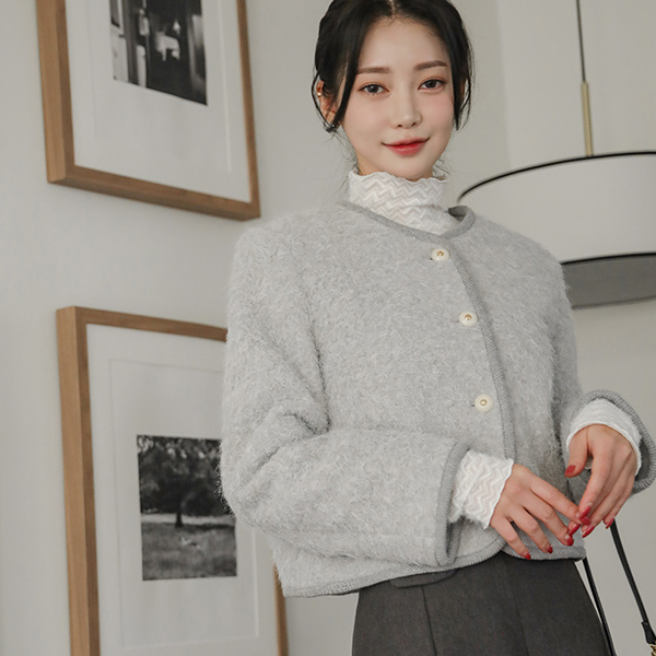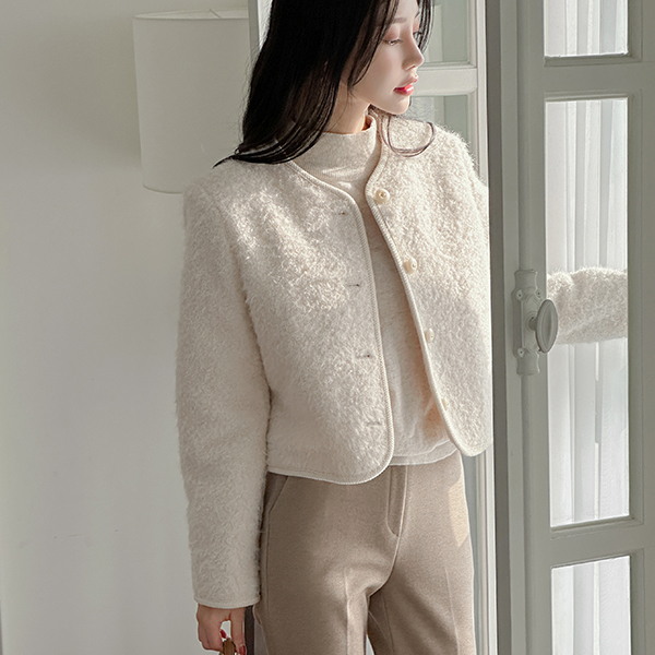 蓬松。 触摸 圆领 羊毛 夹克 (绗缝里料)