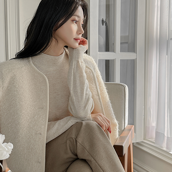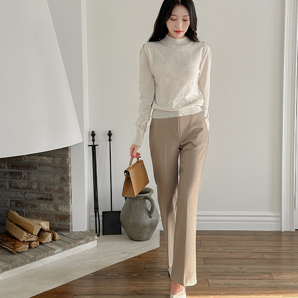 细密 弹力 细褶 松紧带 喇叭 裤子 (衬里加绒)