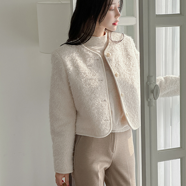 蓬松。 触摸 圆领 羊毛 夹克 (绗缝里料)
