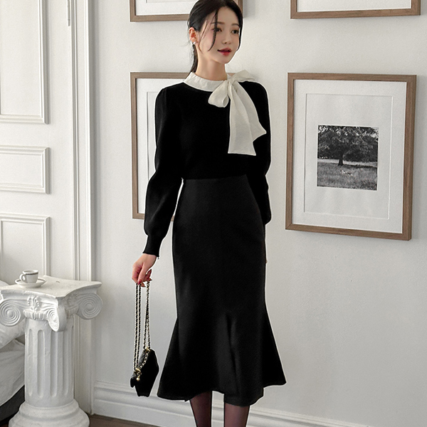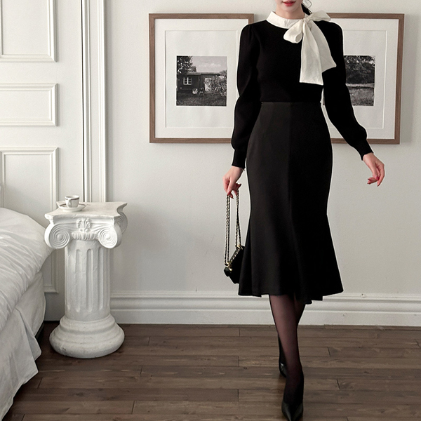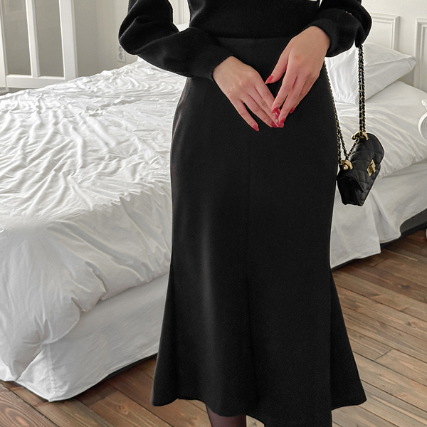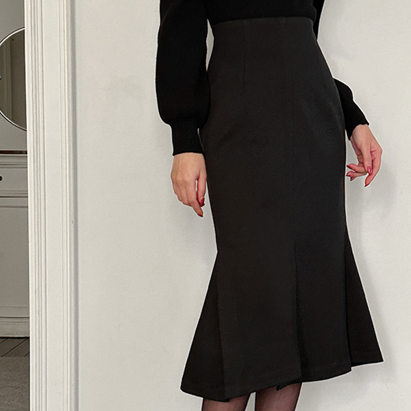 冬季 底端 开衩 美人鱼 裙子 (衬里加绒)