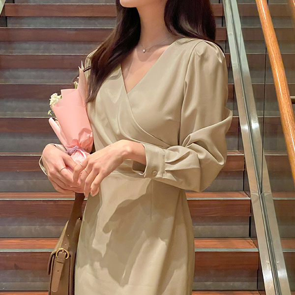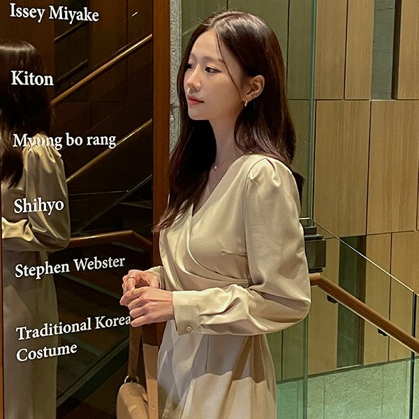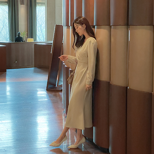 Mine 褶皱 V字领 后面蝴蝶结 弹力 美人鱼 连衣裙